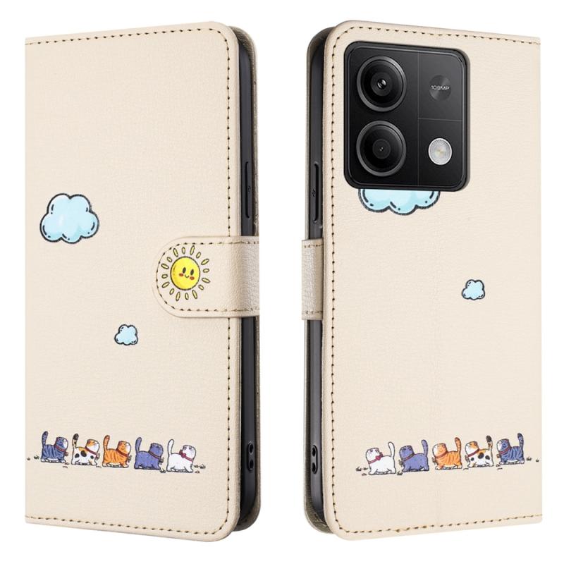 For Xiaomi Redmi Note 13 4G Cartoon Cats Leather Phone Case(Beige White)