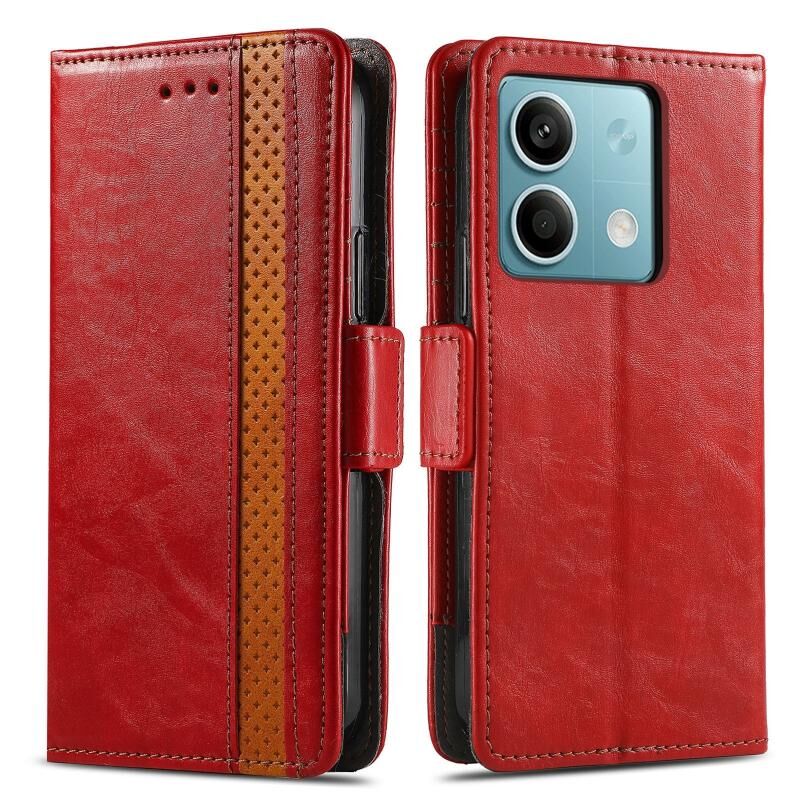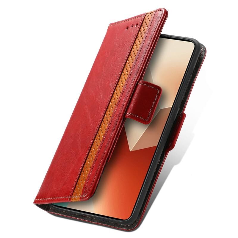 Για Xiaomi Redmi Note 13 4G CaseNeo Splicing Διπλή μαγνητική πόρπη δερμάτινη θήκη τηλεφώνου (Κόκκινο)
