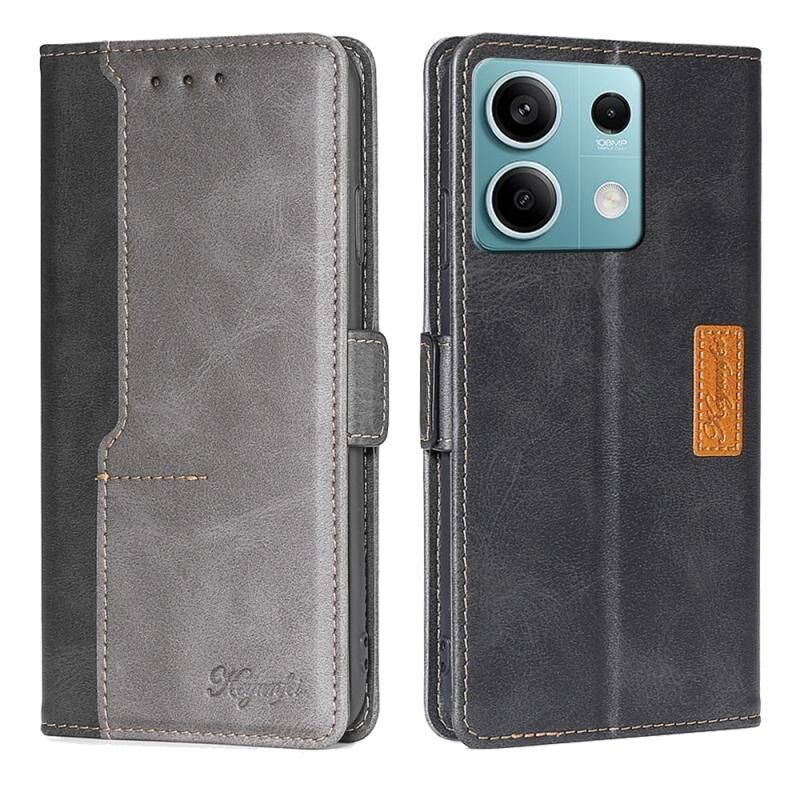 Για Xiaomi Redmi Note 13 4G αντίθεση χρώμα πλευρά πόρπη δερμάτινη θήκη τηλεφώνου (μαύρο + γκρι)