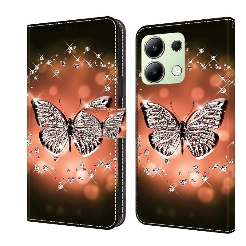 Θήκη κινητού τηλεφώνου από δέρμα, κρυστάλλινη 3D αντικραδασμική προστατευτική για Xiaomi Redmi Note 13 4G (Κρυστάλλινο Πεταλούδα)