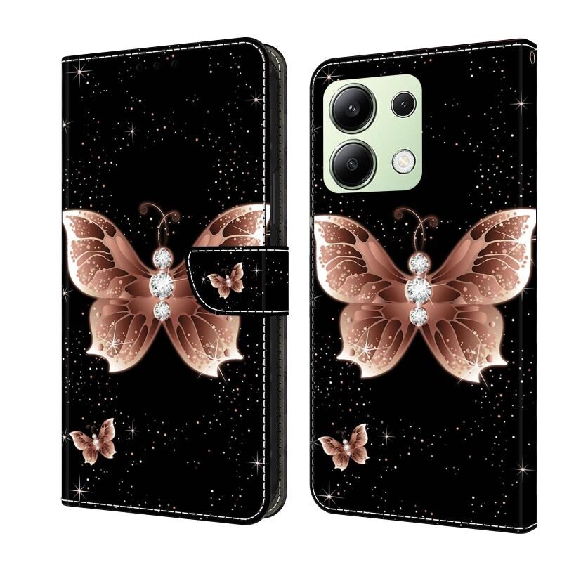 Θήκη κινητού τηλεφώνου από δέρμα, κρυστάλλινη, τρισδιάστατη, αντικραδασμική, προστατευτική για Xiaomi Redmi Note 13 4G (Ροζ βάση με πεταλούδες)