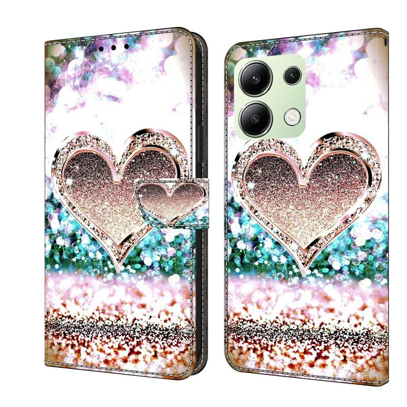 Θήκη κινητού τηλεφώνου από δέρμα, κρυστάλλινη, τρισδιάστατη, αντικραδασμική, προστατευτική για Xiaomi Redmi Note 13 4G (Ροζ βάση με πεταλούδες)