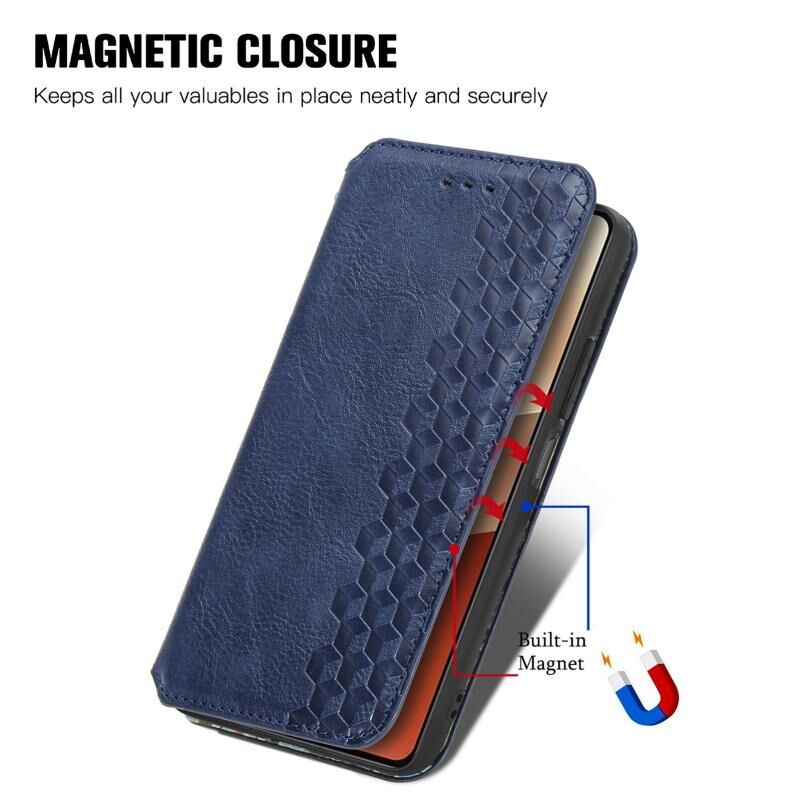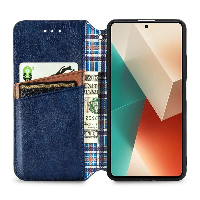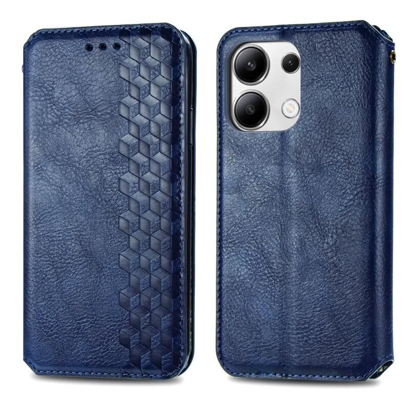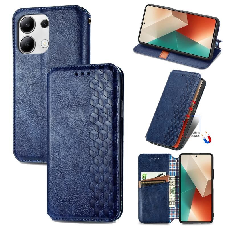 Για Xiaomi Redmi Note 13 4G Cubic Grid Pressed μαγνητική δερμάτινη θήκη τηλεφώνου (Μπλε)