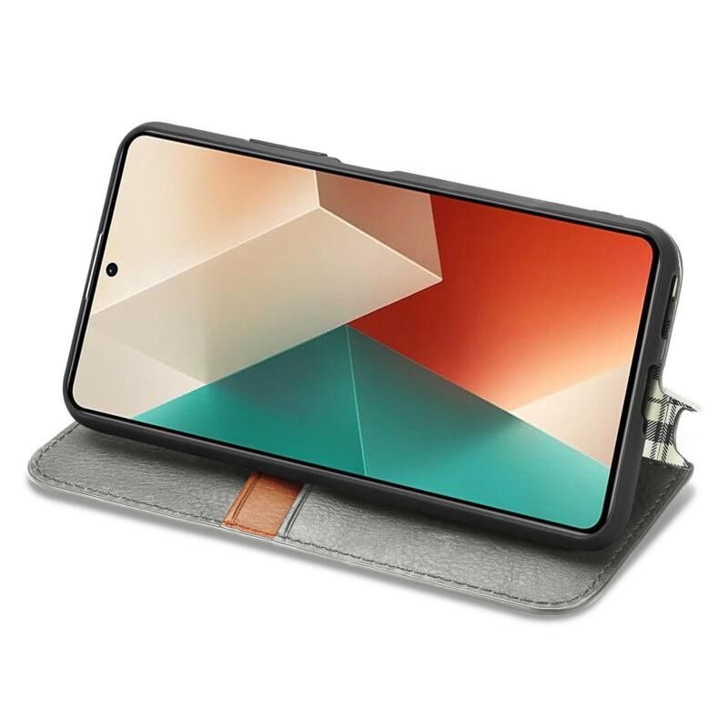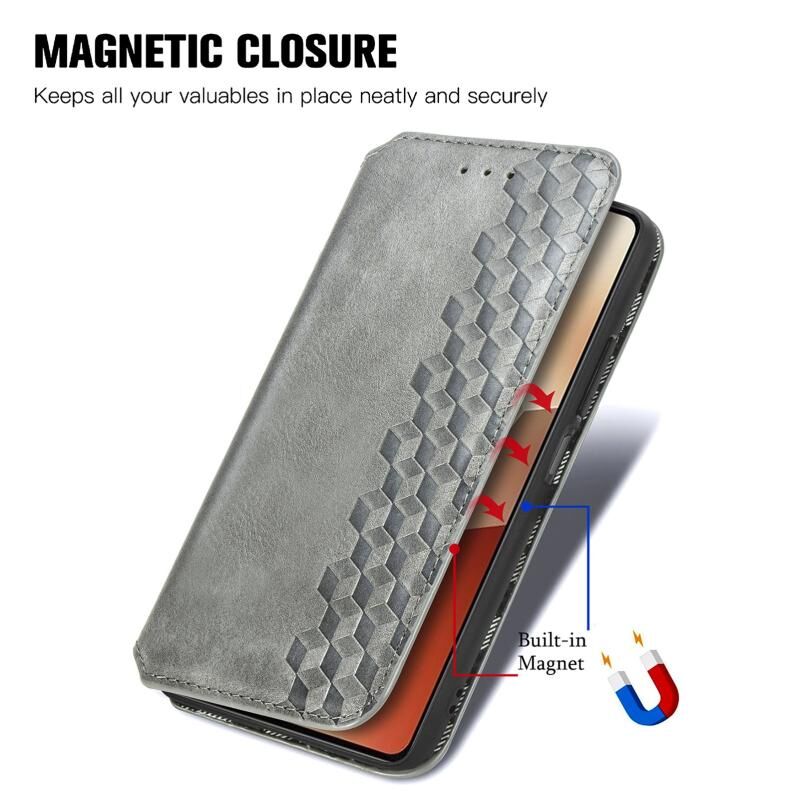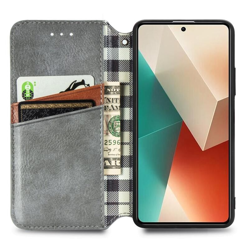 Για Xiaomi Redmi Note 13 4G Cubic Grid Pressed μαγνητική δερμάτινη θήκη τηλεφώνου (γκρι)