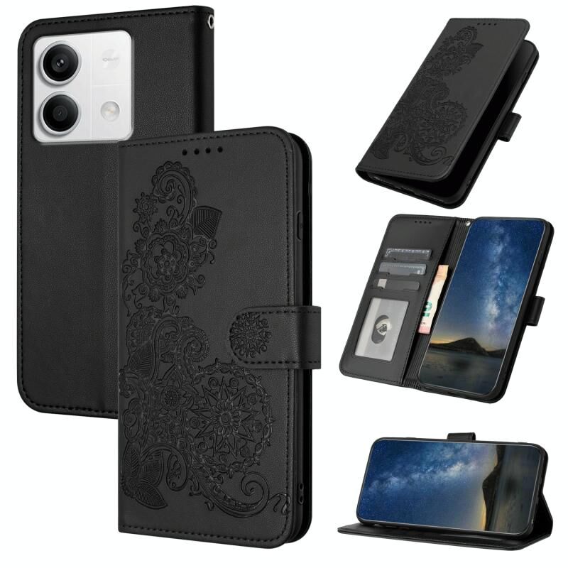 Για Xiaomi Redmi Σημείωση 13 4G Datura λουλούδι ανάγλυφο Flip υπόθεση τηλεφώνου δέρμα (Μαύρο)