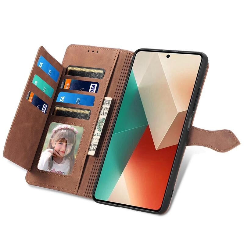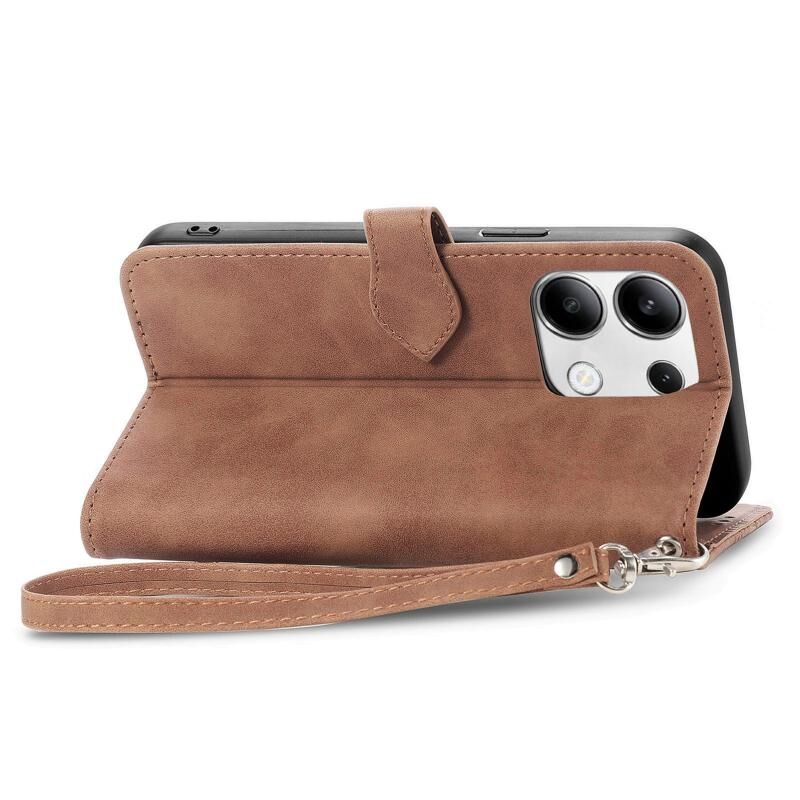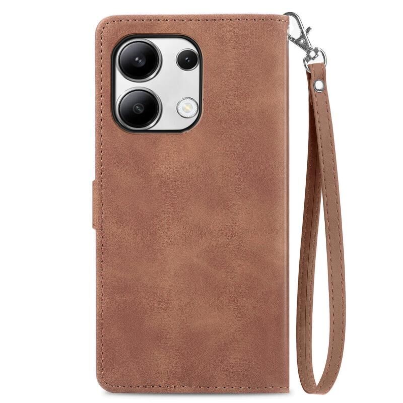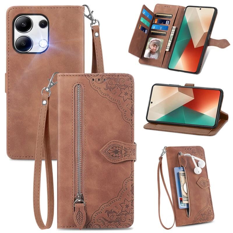 Για Xiaomi Redmi Σημείωση 13 4G ανάγλυφο λουλούδι φερμουάρ δερμάτινη θήκη τηλεφώνου (καφέ)