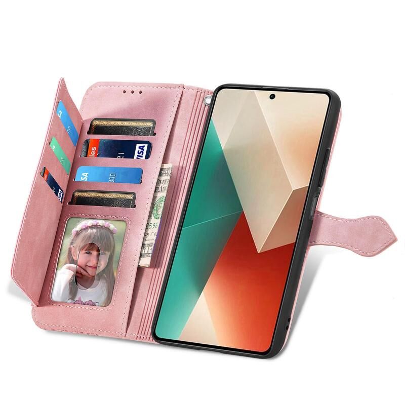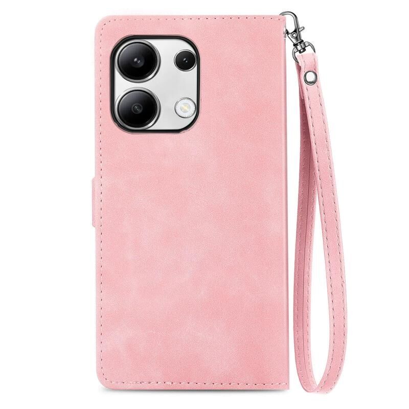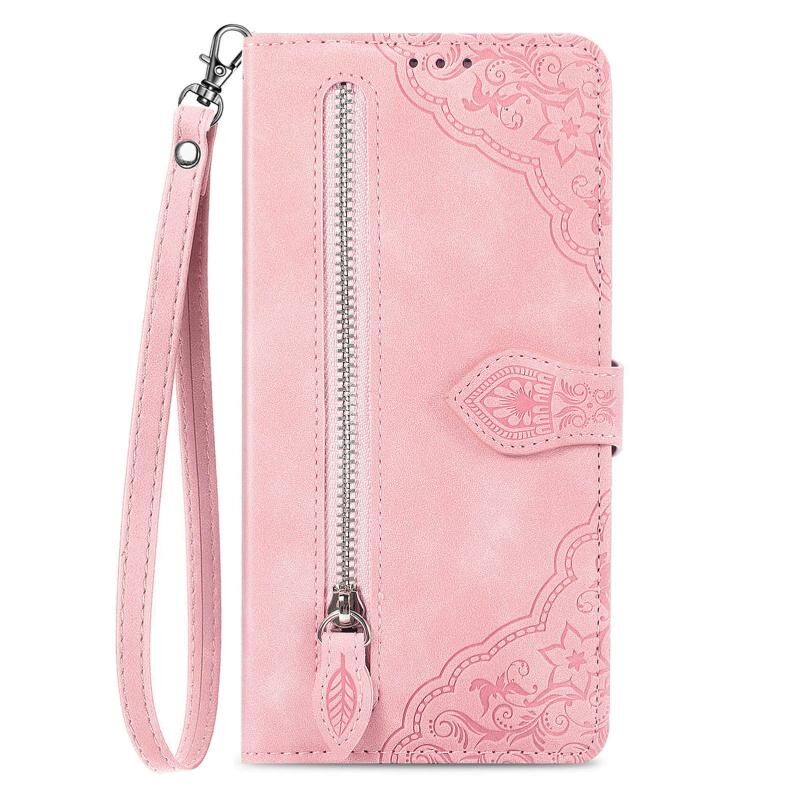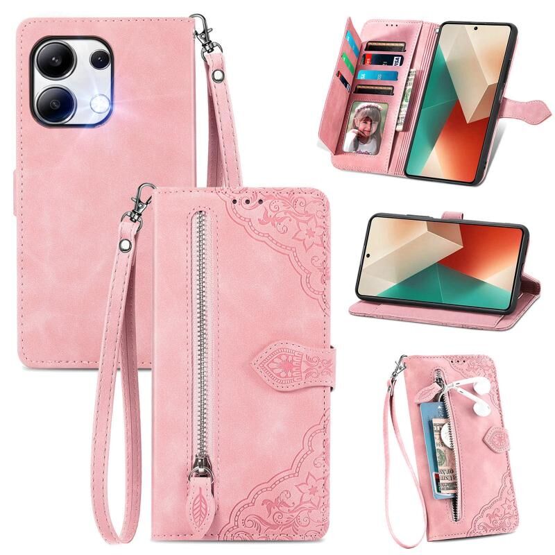 Για Xiaomi Redmi Σημείωση 13 4G ανάγλυφο λουλούδι φερμουάρ δερμάτινη θήκη τηλεφώνου (ροζ)
