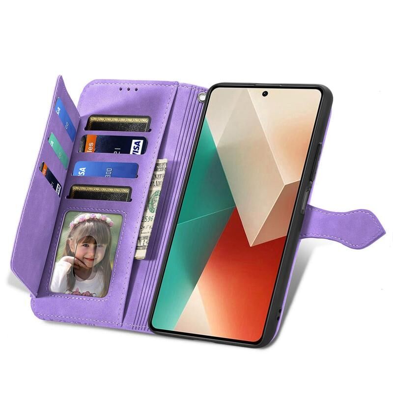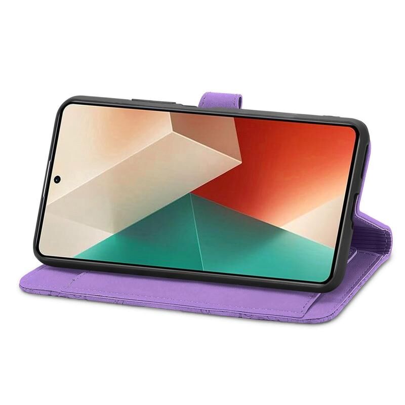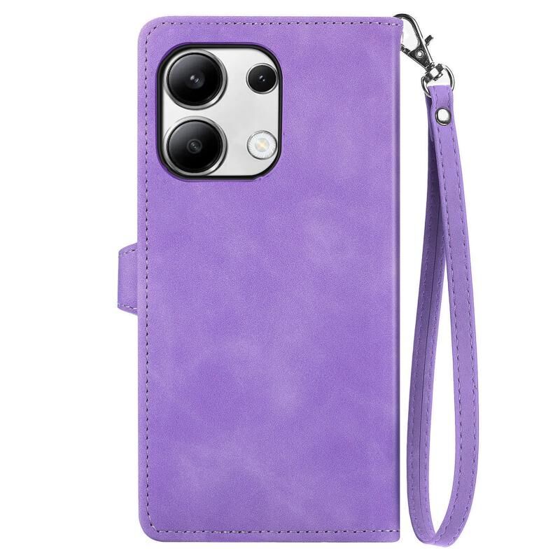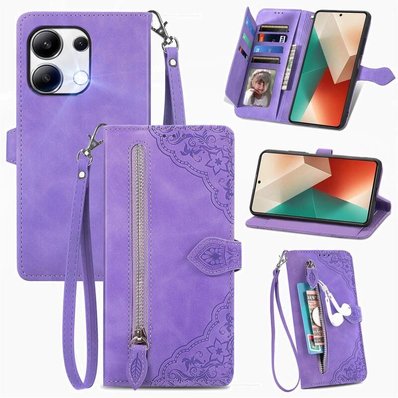 Για Xiaomi Redmi Σημείωση 13 4G ανάγλυφο λουλούδι φερμουάρ δερμάτινη θήκη τηλεφώνου (μωβ)