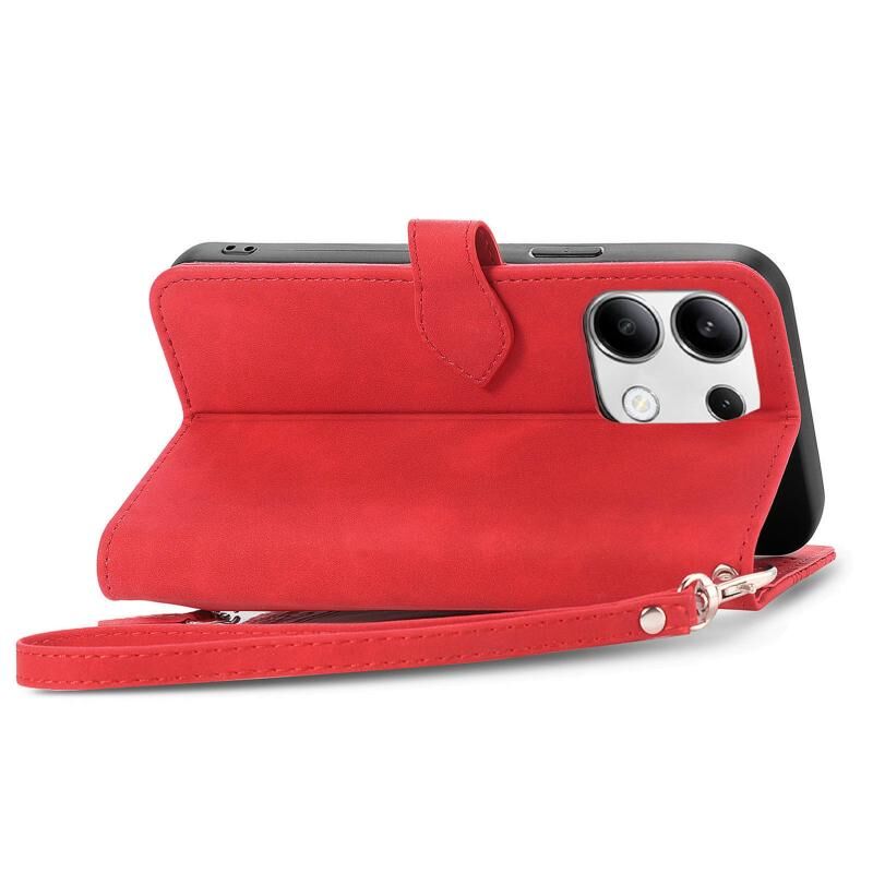 Για Xiaomi Redmi Σημείωση 13 4G ανάγλυφο λουλούδι φερμουάρ δερμάτινη θήκη τηλεφώνου (κόκκινο)