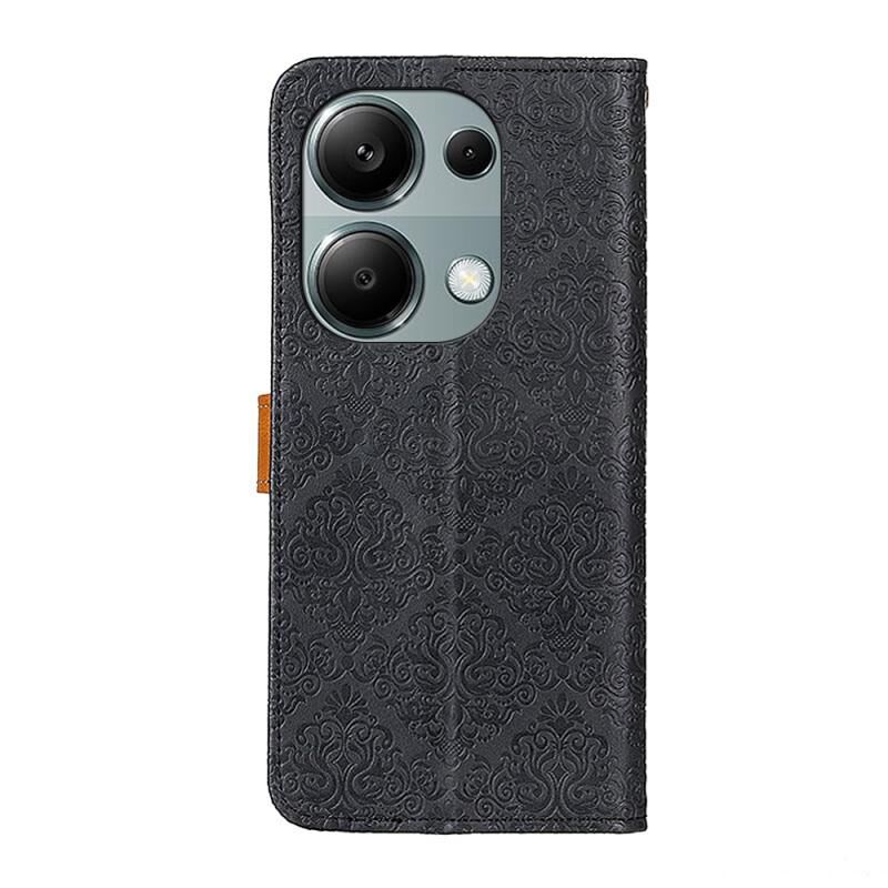 Για Xiaomi Redmi Note 13 4G Ευρωπαϊκή Floral ανάγλυφη δερμάτινη θήκη τηλεφώνου (μαύρο)