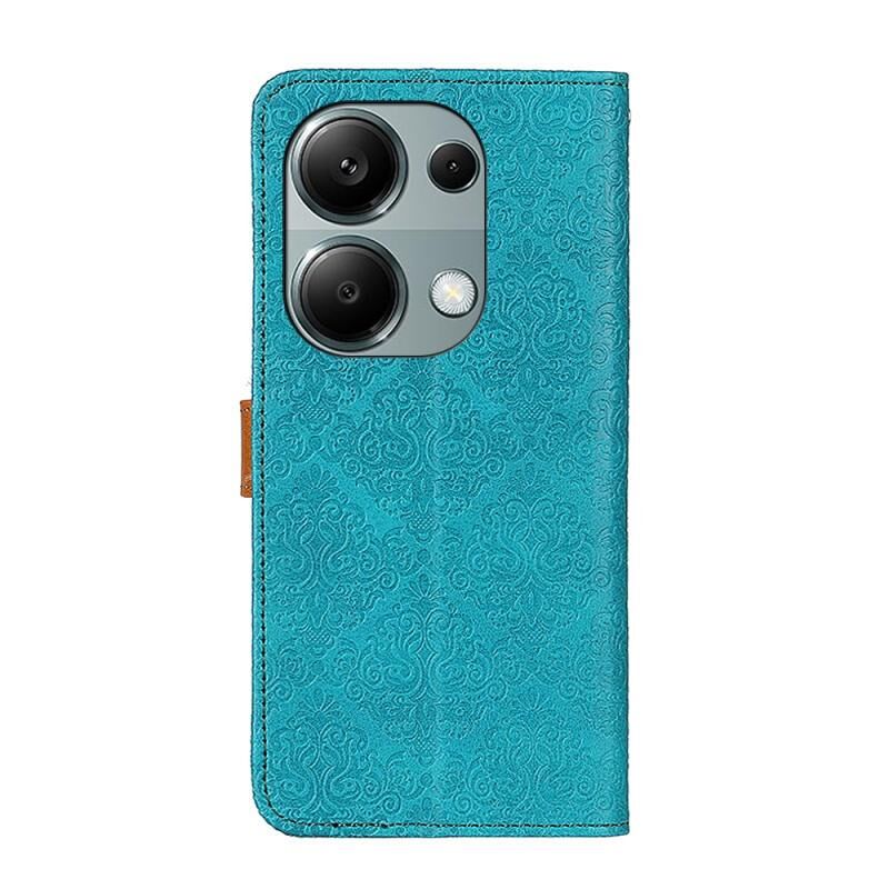 Για Xiaomi Redmi Note 13 4G Ευρωπαϊκή Floral ανάγλυφη δερμάτινη θήκη τηλεφώνου (μπλε)