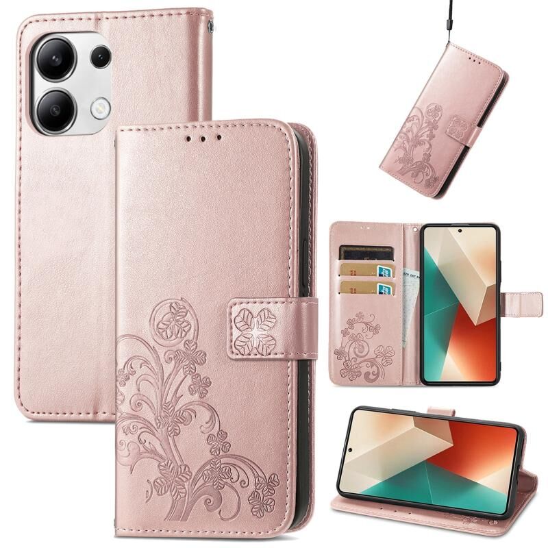 Για Xiaomi Redmi Note 13 4G τετράφυλλο κούμπωμα ανάγλυφη δερμάτινη θήκη τηλεφώνου (Rose Gold)