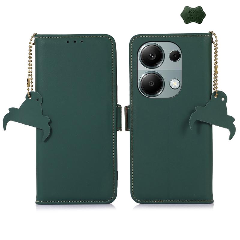For Xiaomi Redmi Note 13 4G Genuine Leather Magnetic RFID Leather Phone Case(Green)