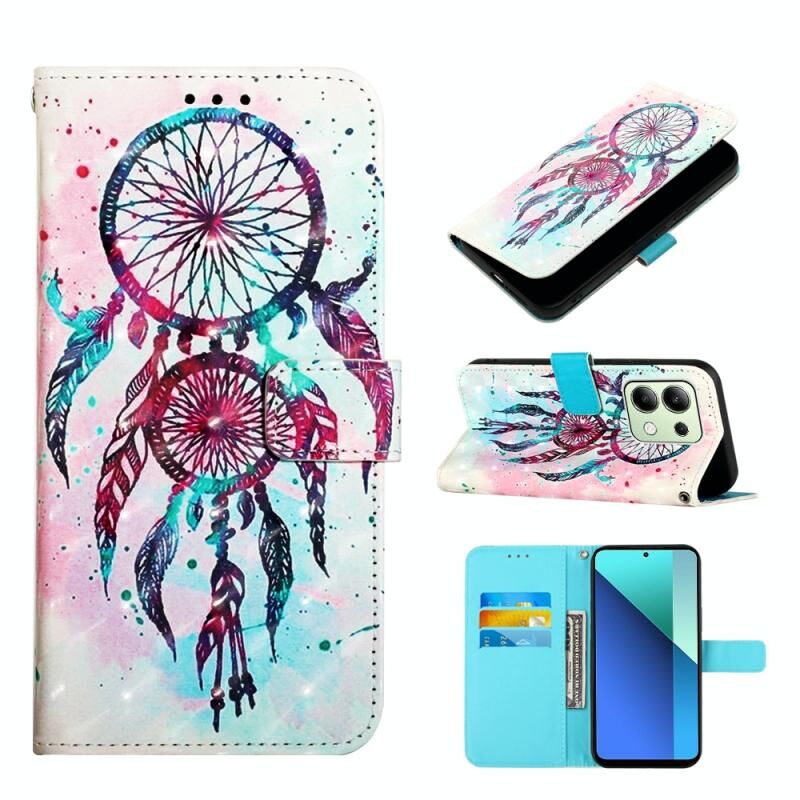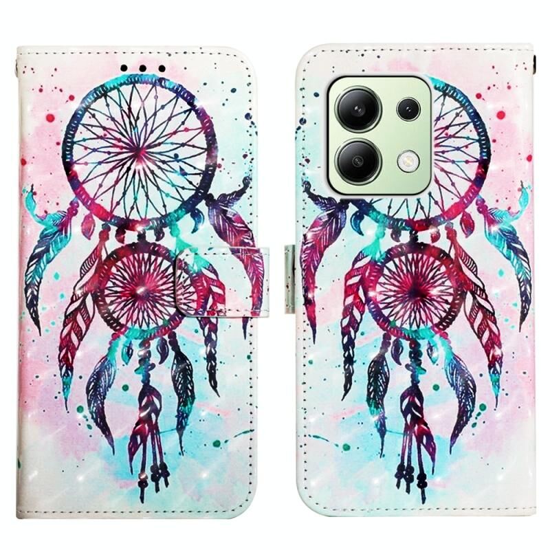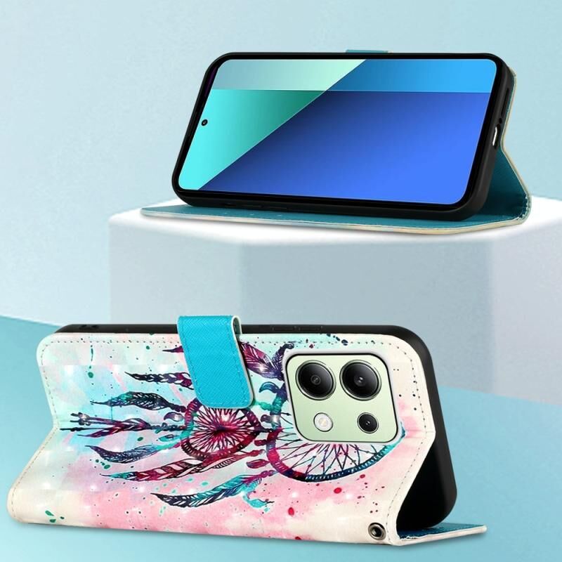 Θήκη τηλεφώνου δερμάτινη με οριζόντιο άνοιγμα και τρισδιάστατη ζωγραφική για Xiaomi Redmi Note 13 4G Global (Κόκκινο)