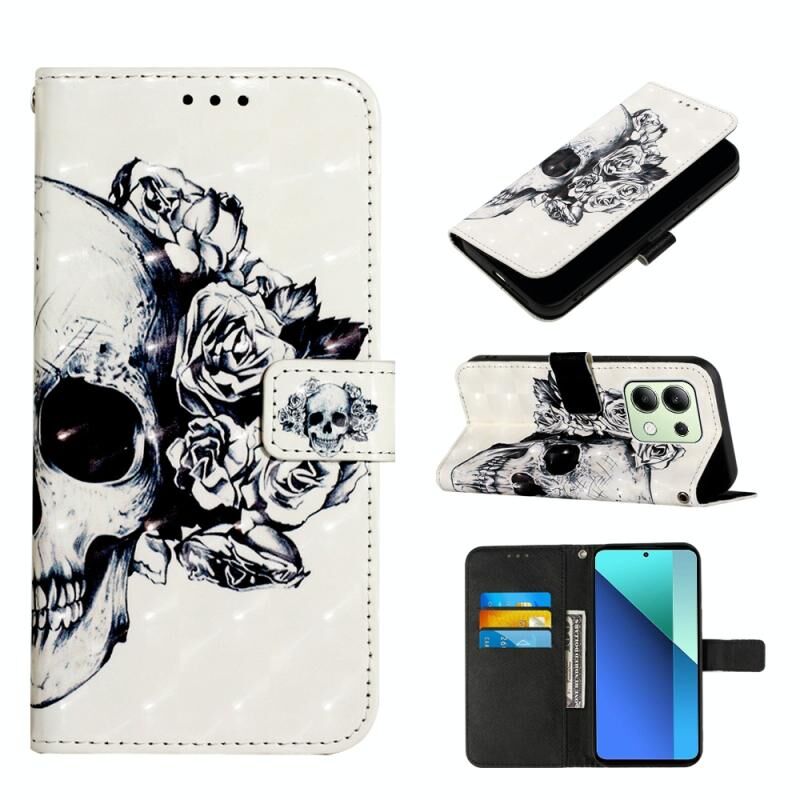 Θήκη τηλεφώνου δερμάτινη με οριζόντιο άνοιγμα και τρισδιάστατη ζωγραφική για Xiaomi Redmi Note 13 4G Global (Κόκκινο)