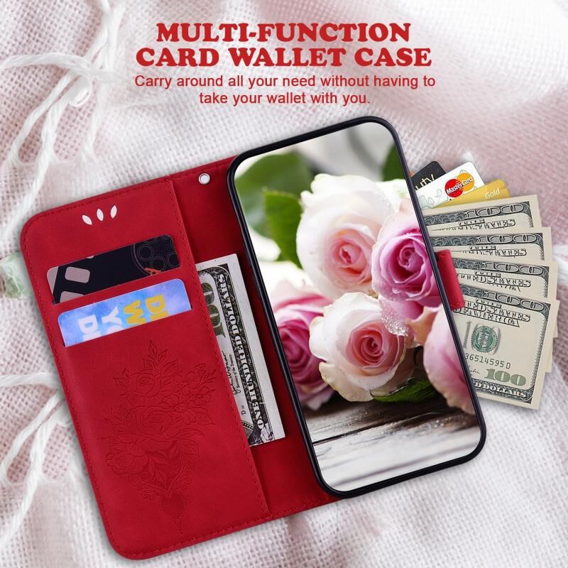 Για Xiaomi Redmi Note 13 4G Παγκόσμια πεταλούδα Rose ανάγλυφη δερμάτινη θήκη τηλεφώνου (κόκκινο)