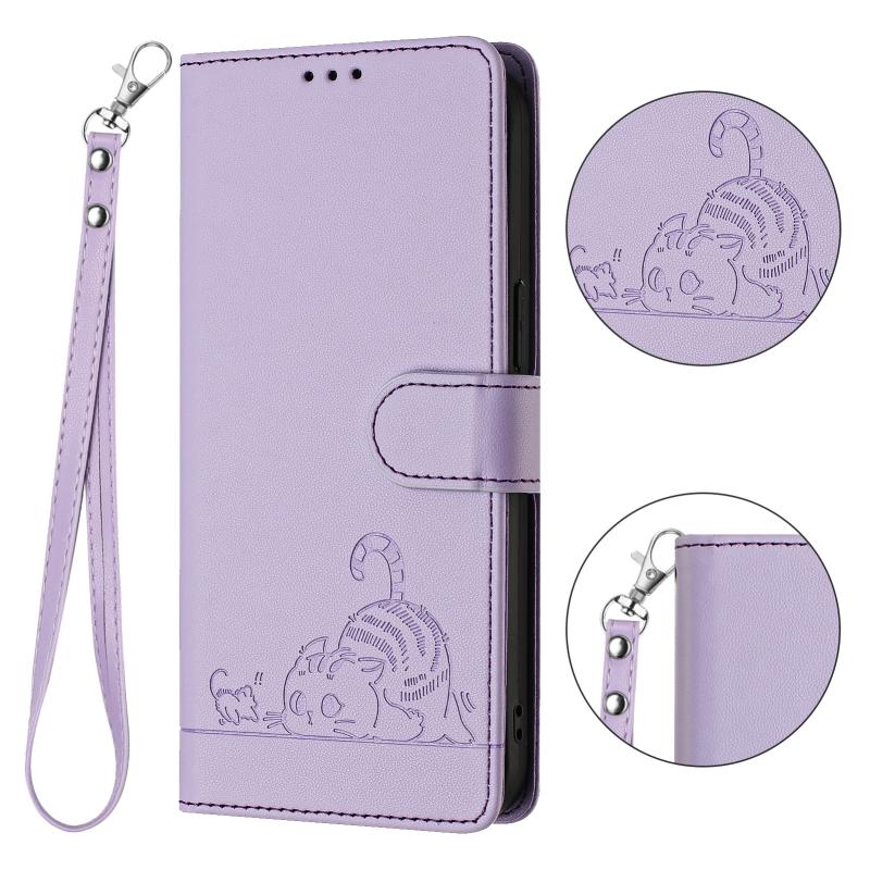 Για Xiaomi Redmi Note 13 4G Γατόπαρδος ανάγλυφη θήκη με λουρί καρπού (Μωβ)