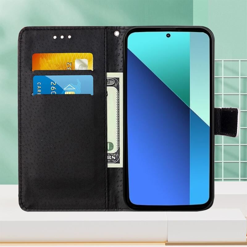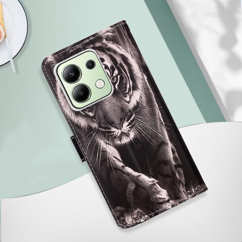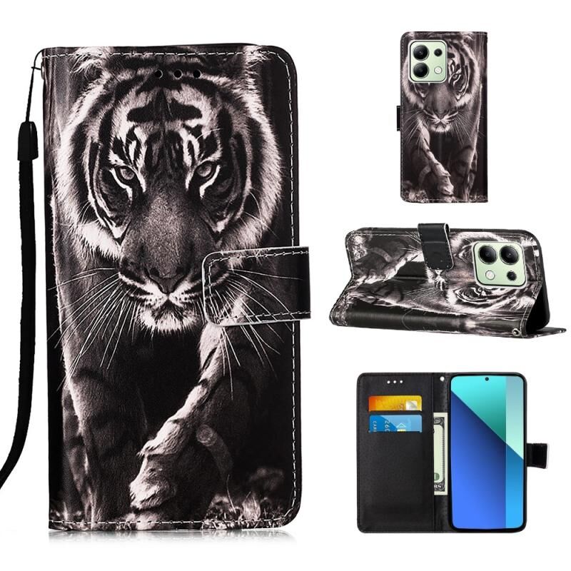Θήκη τηλεφώνου από δέρμα με απλή ύφανση και πολύχρωμο σχέδιο για Xiaomi Redmi Note 13 4G Global (Μαύρη και Λευκή Τίγρη)