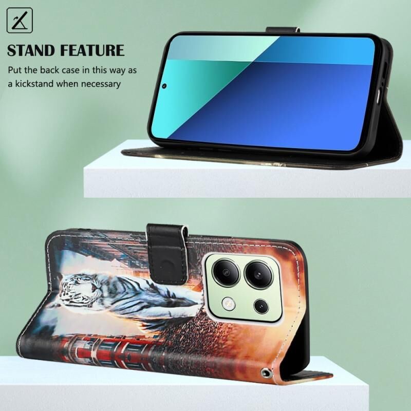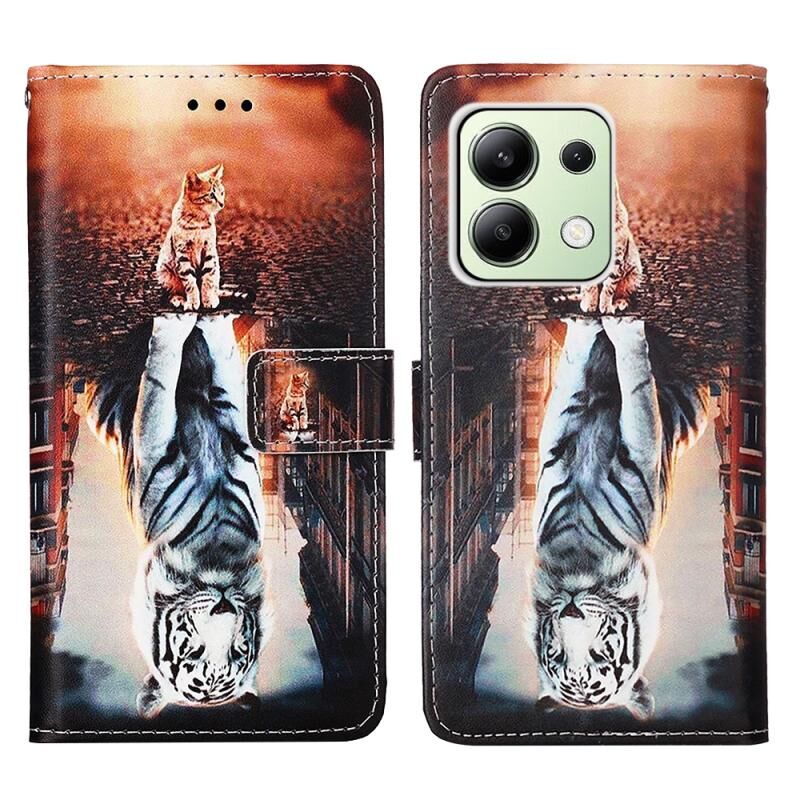 Θήκη τηλεφώνου από δέρμα με απλή ύφανση και πολύχρωμο σχέδιο (γάτες και τίγρεις) για Xiaomi Redmi Note 13 4G Global. (Κόκκινο)