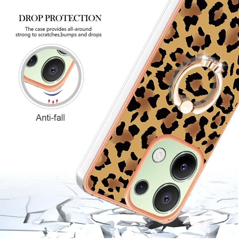 Θήκη Xiaomi Redmi Note 13 4G Global με Δαχτυλίδι και Επιμετάλλωση (Σχέδιο Λεοπάρ)