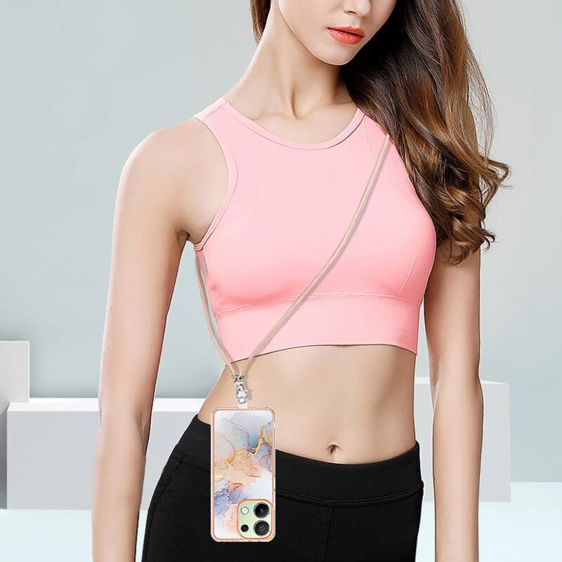 Θήκη τηλεφώνου Xiaomi Redmi Note 13 4G Global με ηλεκτρολυτική επιμετάλλωση IMD TPU με κορδόνι (Ροζ Λέπια)