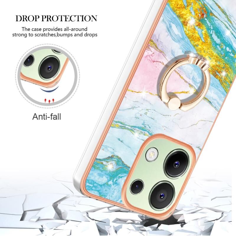 Θήκη τηλεφώνου Xiaomi Redmi Note 13 4G Global με Ηλεκτρολυτική Επικάλυψη, Μάρμαρο IMD, TPU και Δακτύλιο Στήριξης (Λευκό 006)