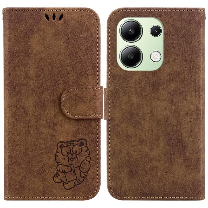 Θήκη δερμάτινη με ανάγλυφο Little Tiger για Xiaomi Redmi Note 13 4G Global (Καφέ)