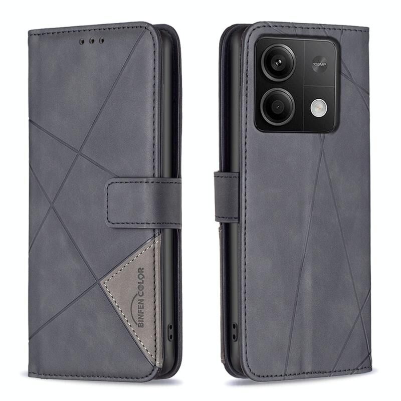 Για Xiaomi Redmi Note 13 4G Παγκόσμια μαγνητική πόρπη Rhombus Υφή δερμάτινη θήκη τηλεφώνου (μαύρο)