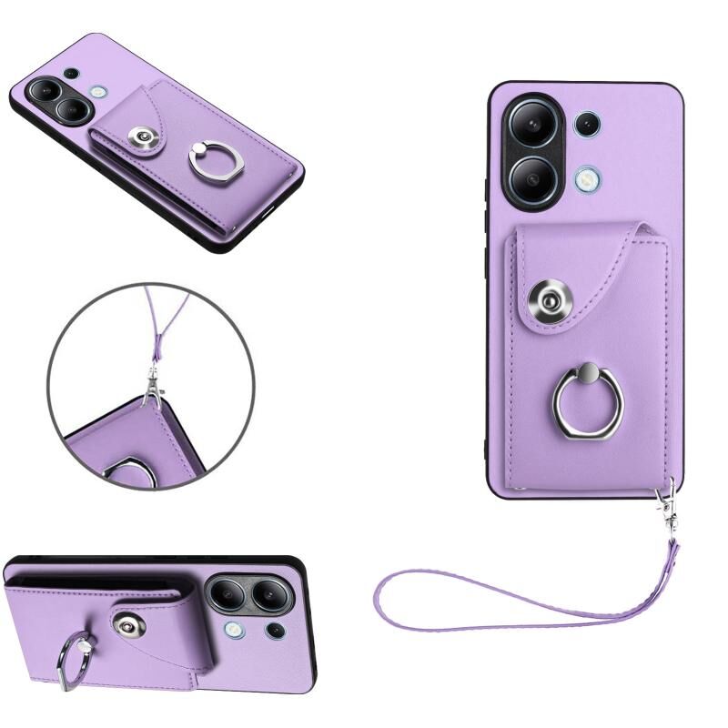 Για Xiaomi Redmi Σημείωση 13 4G Παγκόσμια Οργανική κάρτα τσάντα δαχτυλίδι κάτοχος PU υπόθεση τηλεφώνου με κορδόνι (μωβ)