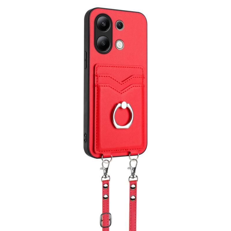 Για Xiaomi Redmi Σημείωση 13 4G Global R20 Crossbody σχοινί δαχτυλίδι κάρτας κάτοχος υπόθεση τηλεφώνου (κόκκινο)
