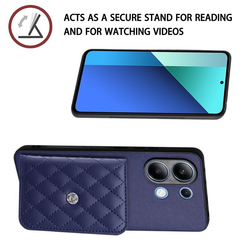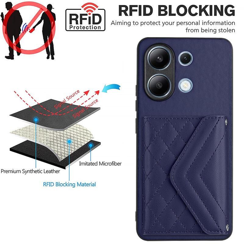 Για Xiaomi Redmi Σημείωση 13 4G Global Rhombic υφή κάρτα τσάντα RFID υπόθεση τηλεφώνου (Σκούρο μωβ)