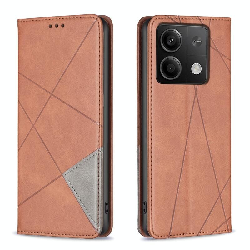 Για Xiaomi Redmi Note 13 4G Global Rhombus Texture μαγνητική δερμάτινη θήκη τηλεφώνου (καφέ)