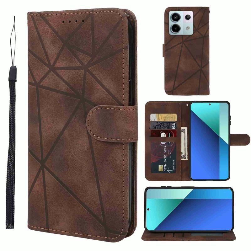 Για Xiaomi Redmi Note 13 4G Global Skin Feel Γεωμετρικές γραμμές δερμάτινη θήκη τηλεφώνου (Καφέ)