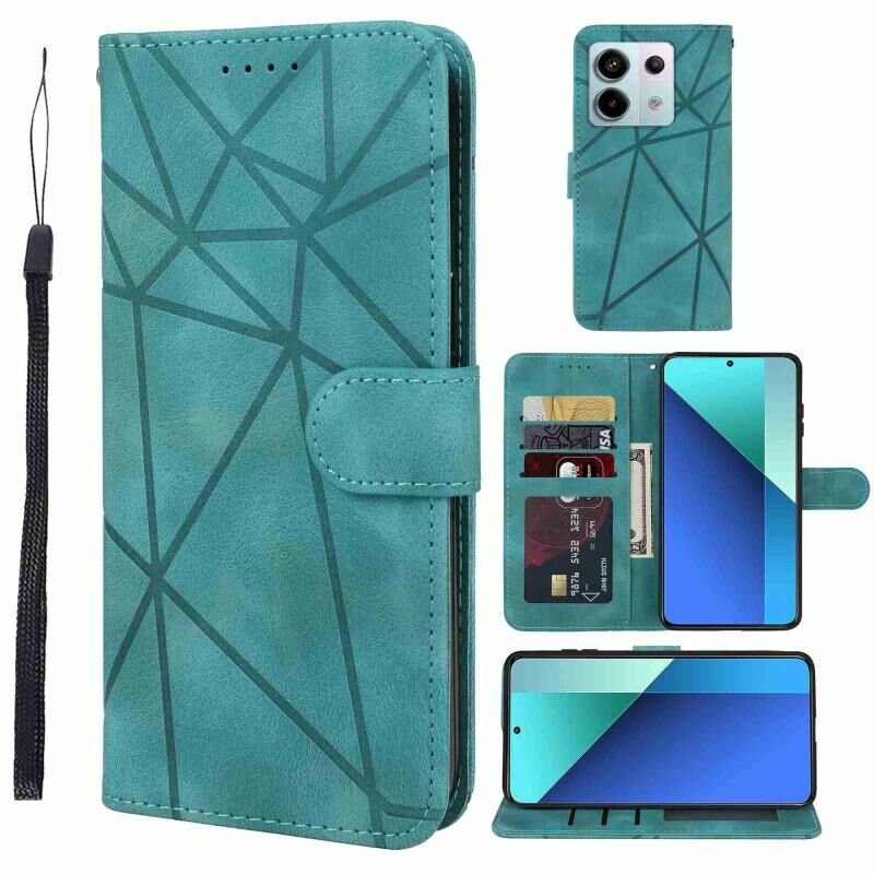 Για Xiaomi Redmi Note 13 4G Global Skin Feel Γεωμετρικές γραμμές δερμάτινη θήκη τηλεφώνου (πράσινο)