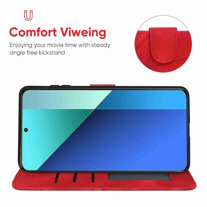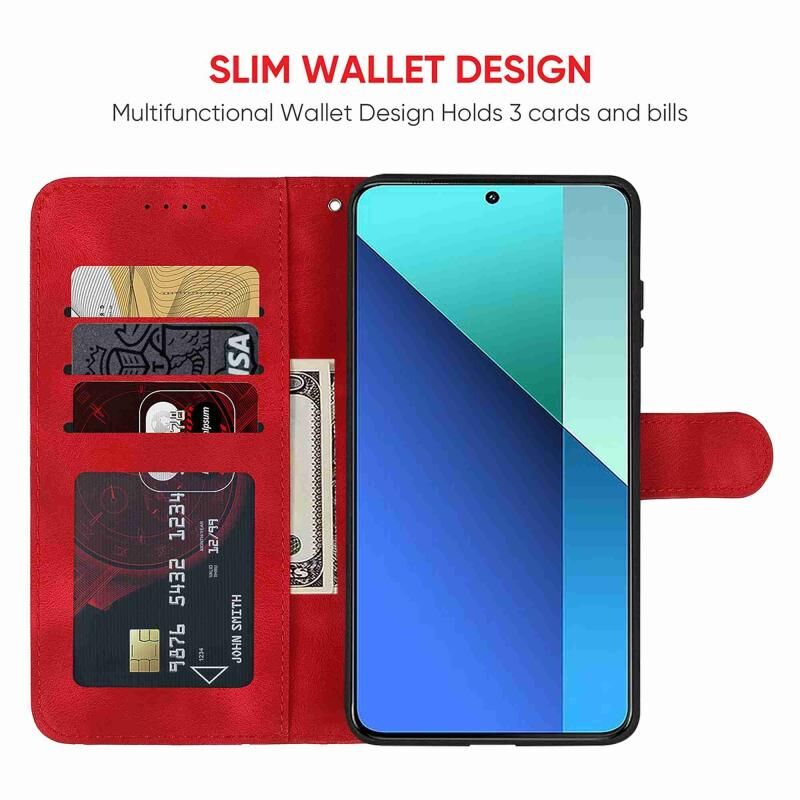 Για Xiaomi Redmi Note 13 4G Global Skin Feel Γεωμετρικές γραμμές δερμάτινη θήκη τηλεφώνου (Κόκκινο)