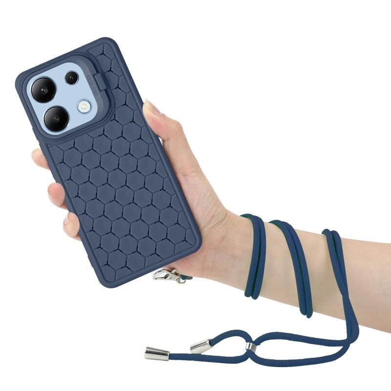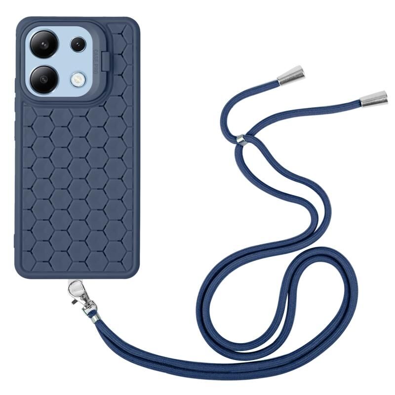 Για Xiaomi Redmi Note 13 4G κηρήθρα ακτινοβολία κάτοχος TPU τηλέφωνο υπόθεση με κορδόνι (μπλε)