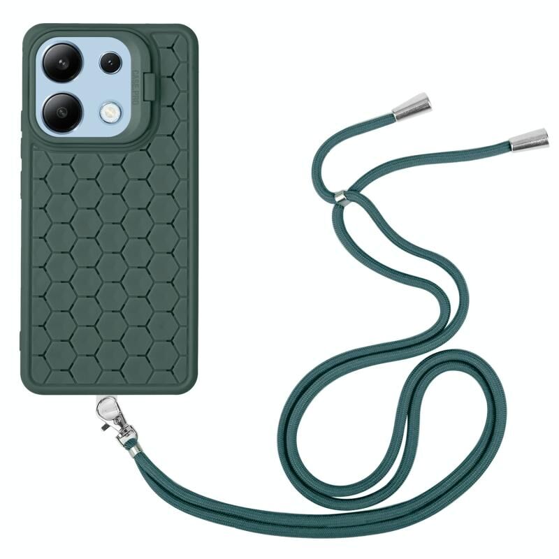 Για Xiaomi Redmi Σημείωση 13 4G κηρήθρα ακτινοβολία κάτοχος TPU τηλέφωνο υπόθεση με κορδόνι (πράσινο)