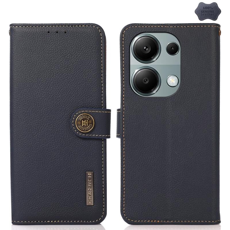Θήκη τηλεφώνου από γνήσιο δέρμα με υφή Custer KHAZNEH για Xiaomi Redmi Note 13 4G (Μπλε)