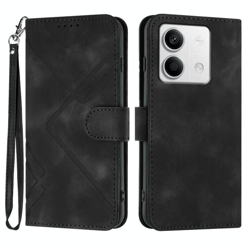 Για Xiaomi Redmi Σημείωση 13 4G Γραμμή μοτίβο δέρμα δέρμα αίσθηση τηλέφωνο υπόθεση (μαύρο)