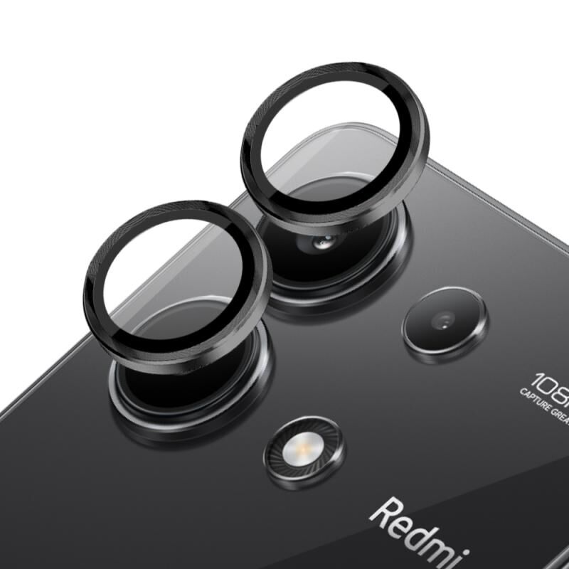 For Xiaomi Redmi Note 13 4G NORTHJO Camera LensCD Vein Metal Ring Tempered Glass Film(Black) (NORTHJO)