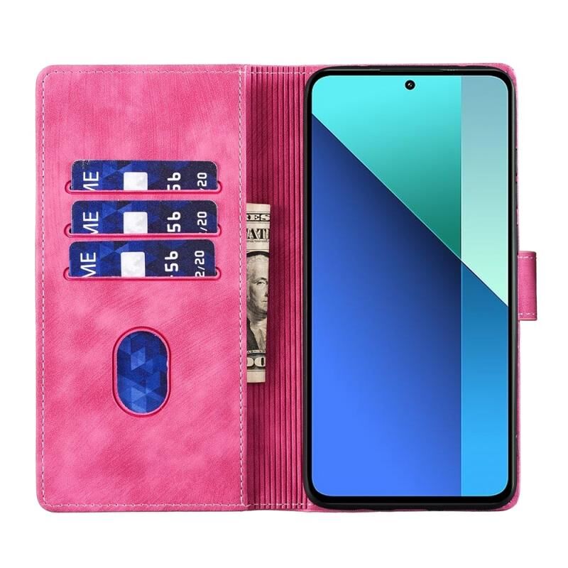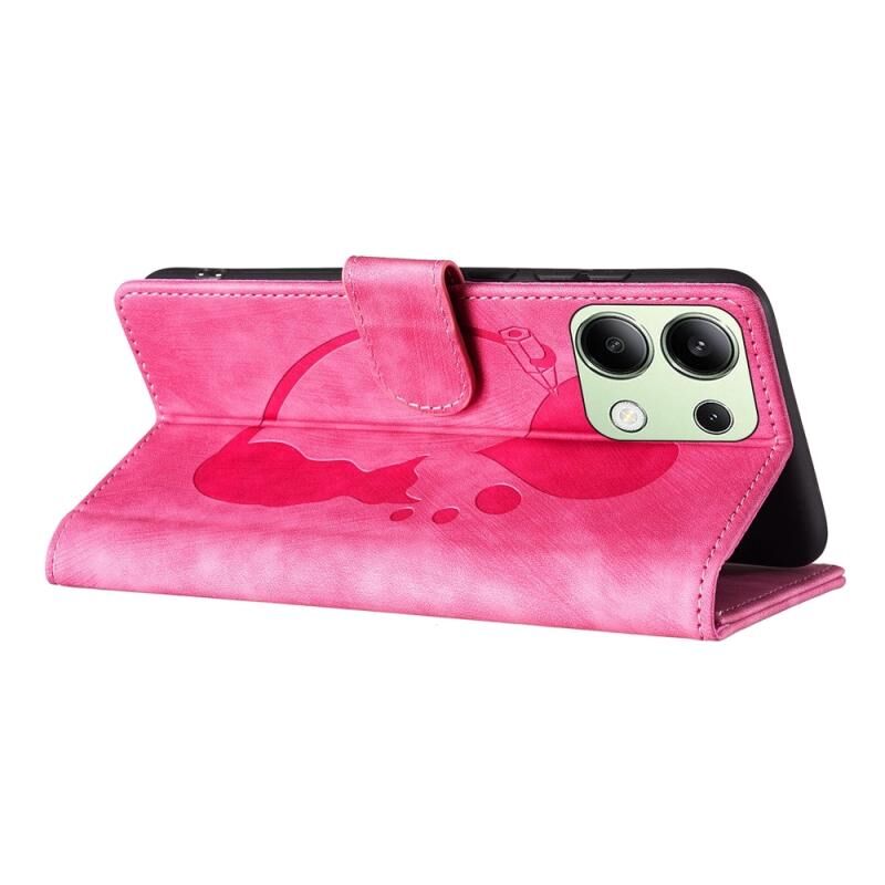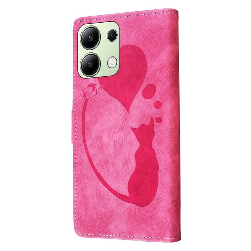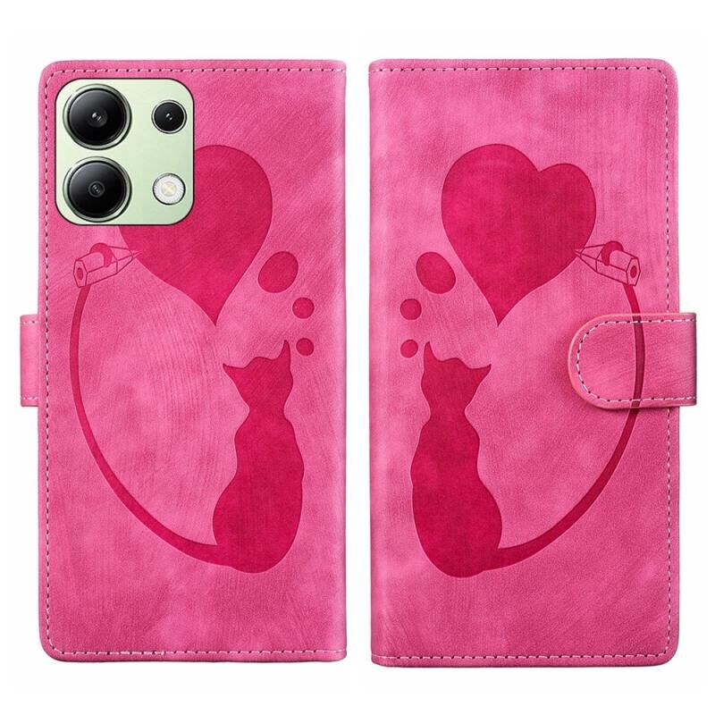Θήκη τηλεφώνου δερμάτινη με ανάγλυφο σχέδιο καρδιάς και γάτας για Xiaomi Redmi Note 13 4G (Πορτοκαλί)