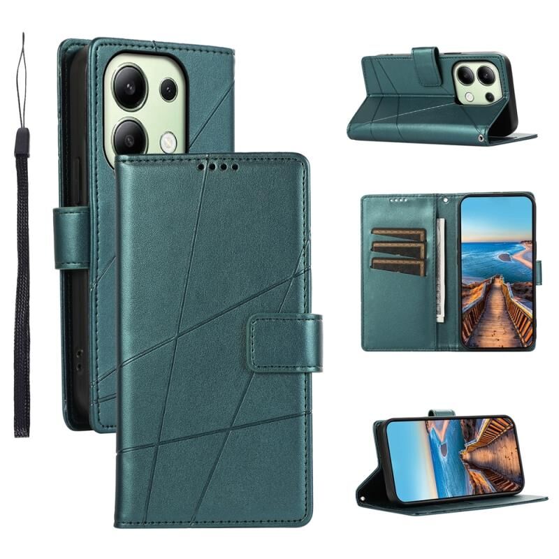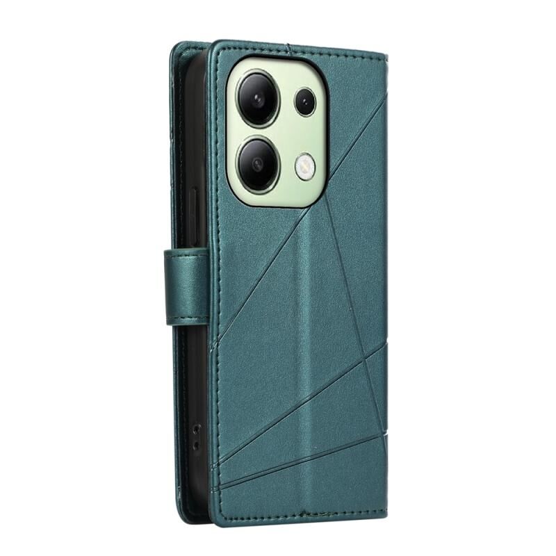 Θήκη τηλεφώνου για Xiaomi Redmi Note 13 4G από γνήσιο δέρμα PU με ανάγλυφη υφή και γραμμές (πράσινο)
