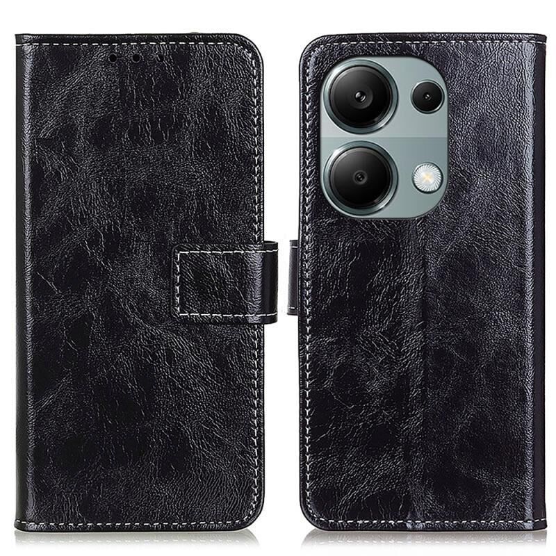 Θήκη τηλεφώνου από δέρμα με υφή Crazy Horse σε ρετρό στυλ για Xiaomi Redmi Note 13 4G (Μαύρο)