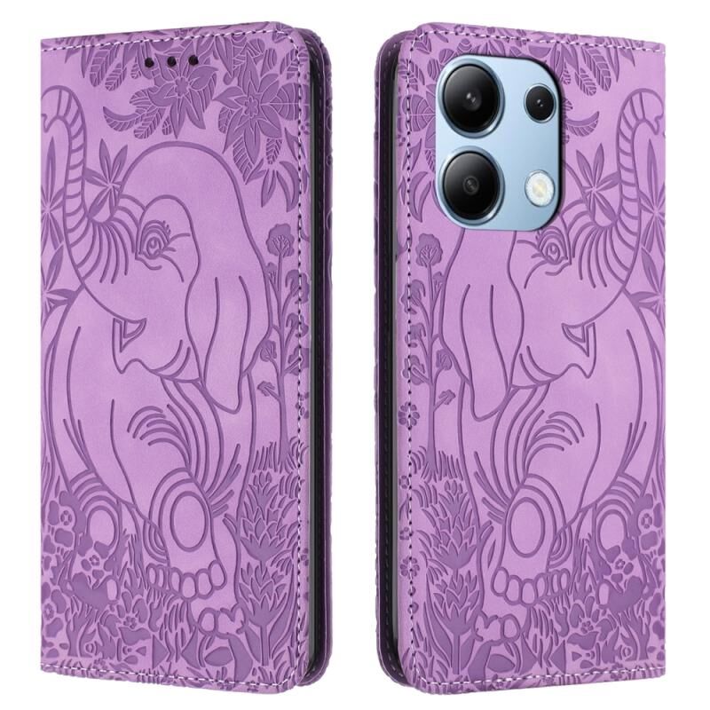Θήκη τηλεφώνου από δέρμα με ανάγλυφο σχέδιο ρετρό ελέφαντα για Xiaomi Redmi Note 13 4G (Μπλε)