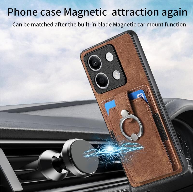 Για Xiaomi Redmi Σημείωση 13 4G Retro δέρμα-συναίσθημα δαχτυλίδι κάρτα πορτοφόλι τηλέφωνο υπόθεση (Καφέ)