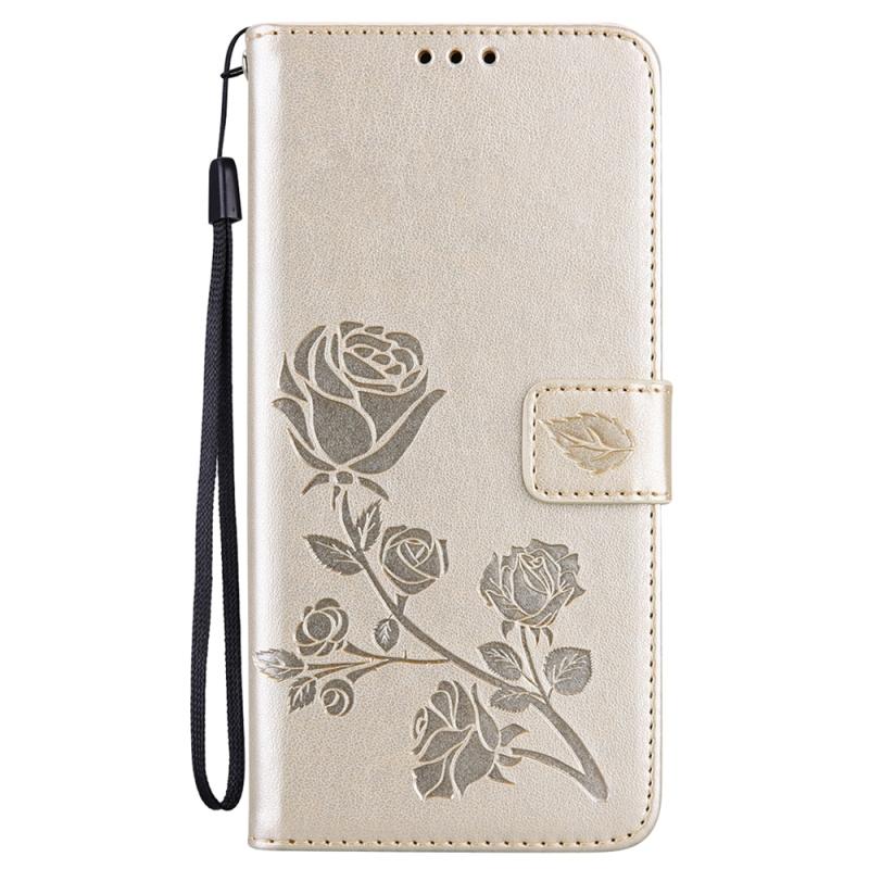 For Xiaomi Redmi Note 13 4G Rose Embossed Flip PU Leather Phone Case(Gold)