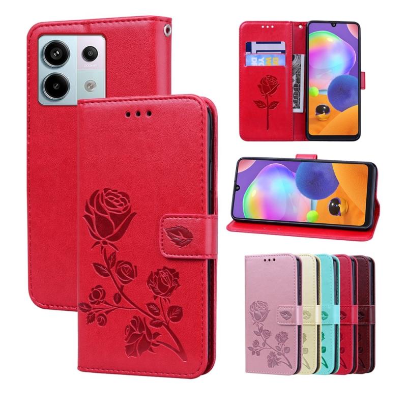 For Xiaomi Redmi Note 13 4G Rose Embossed Flip PU Leather Phone Case(Red)