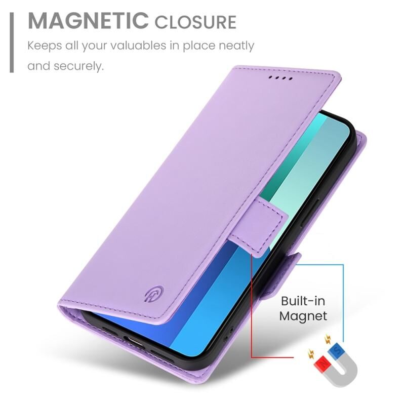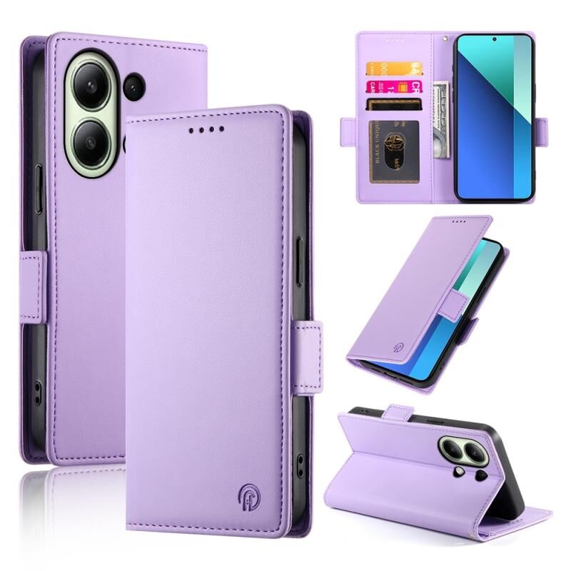 Για Xiaomi Redmi Note 13 4G Side πόρπη μαγνητική παγωμένο δέρμα τηλέφωνο υπόθεση (μωβ)