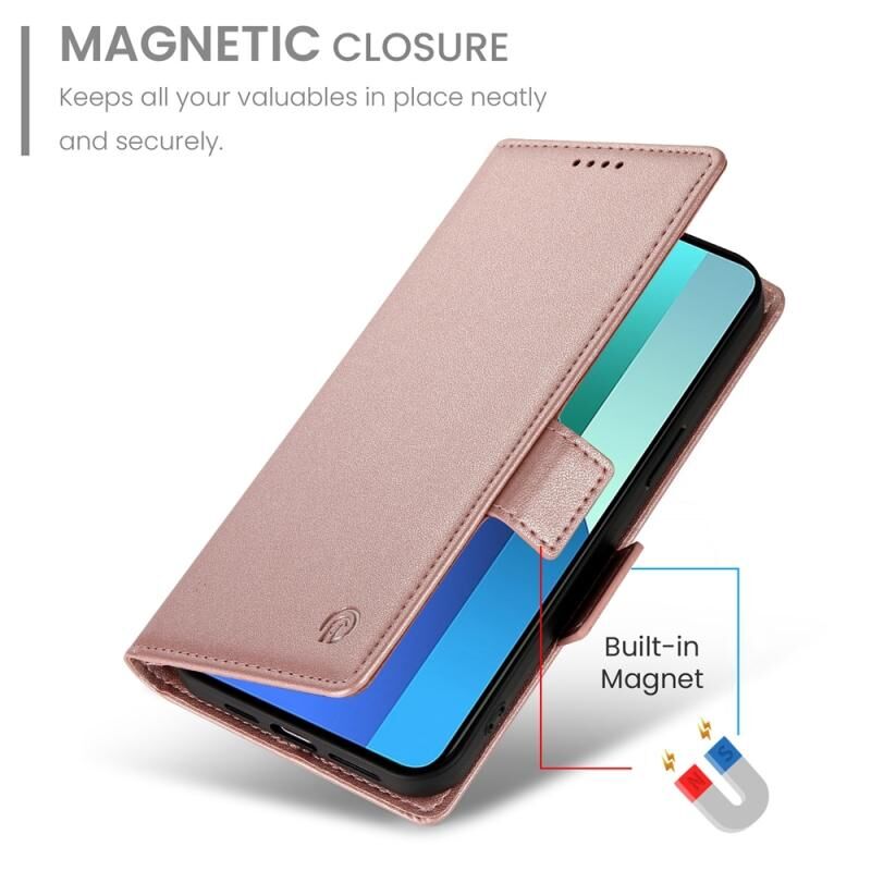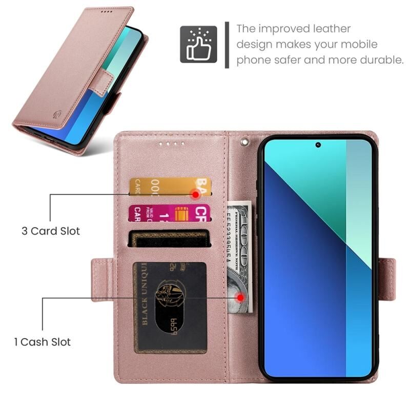 Για Xiaomi Redmi Note 13 4G Side πόρπη μαγνητική παγωμένο δέρμα τηλέφωνο υπόθεση (Rose Gold)