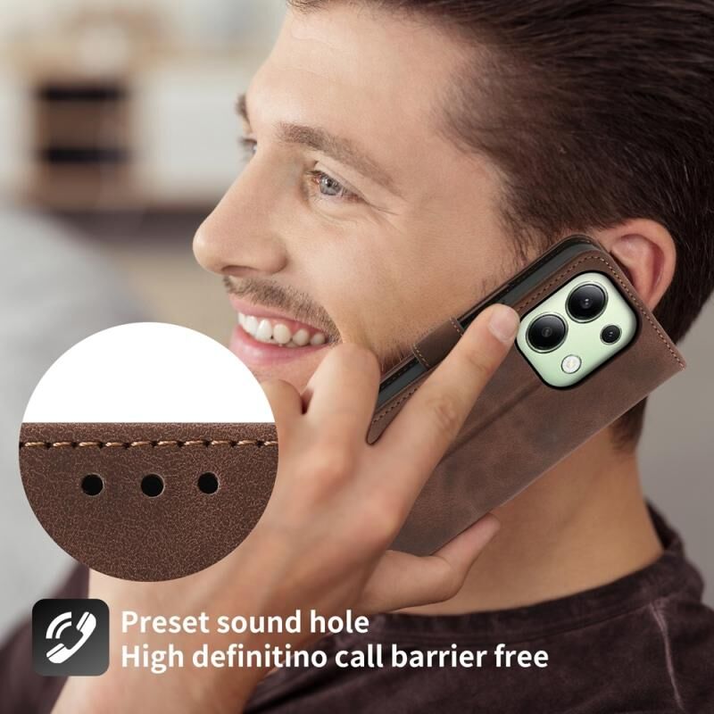 Για Xiaomi Redmi Note 13 4G δέρμα-συναίσθημα λουλούδια ανάγλυφο πορτοφόλι δερμάτινη θήκη τηλεφώνου (Καφέ)